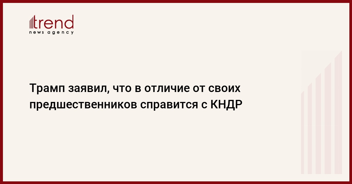 Президент США Дональд Трамп заявил, что "милое обращение" с лидером КНДР на протяжении многих лет не помогло решить ядерную проблему, и выразил уверенность, что ему удастся это сделать, передает РИА Новости.