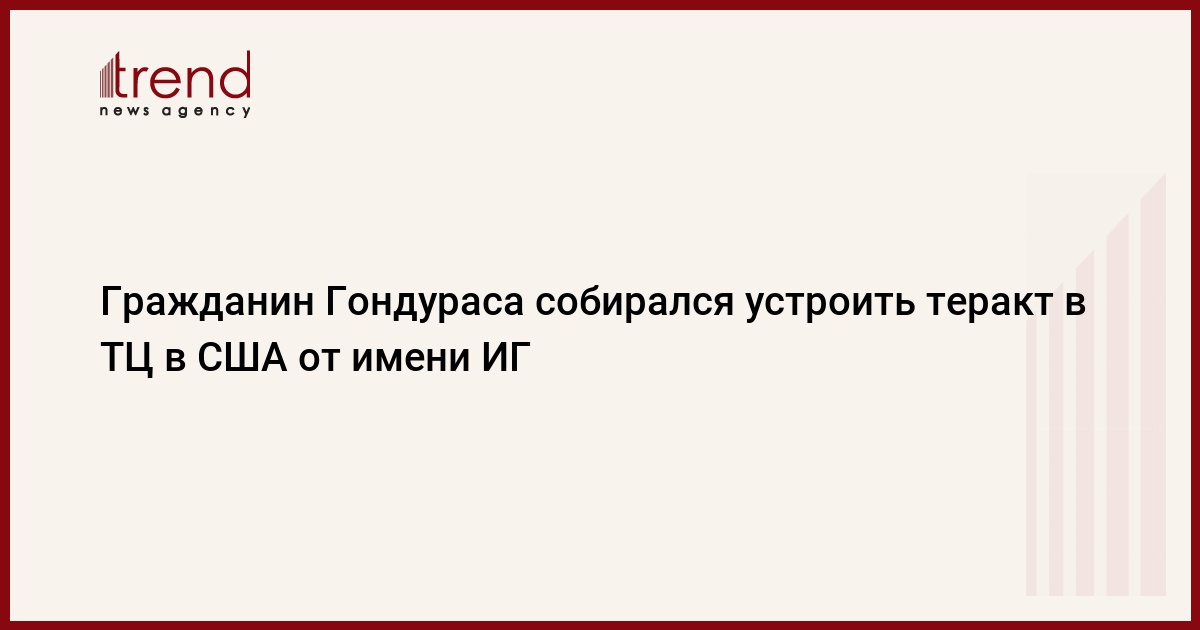 Гражданина Гондураса обвиняют в США в попытке теракта, который он планировал совершить от имени террористической группировки "Исламское государство", мужчину задержали с поличным в одном из торговых центров, передает РИА Новости со ссылкой на министерство юстиции США.