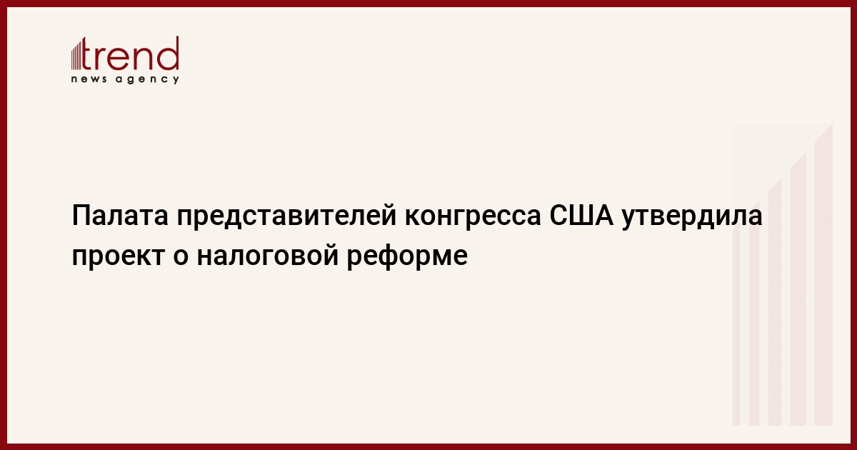 Палата представителей конгресса США утвердила законопроект о налоговой реформе, передает РИА Новости со ссылкой на результаты состоявшегося в четверг голосования.