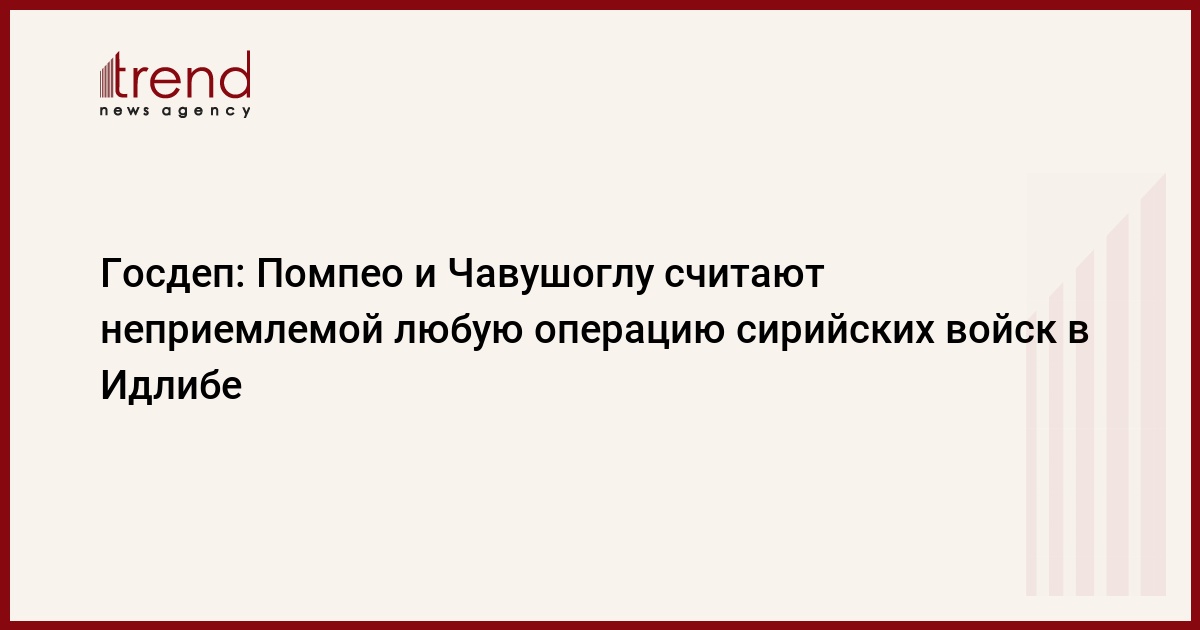 "Помпео провел сегодня телефонные переговоры с министром иностранных дел Турции Мевлютом Чавушоглу, и оба согласились с тем, что любое военное наступление режима [сирийского президента Башара] Асада в Идлибе было бы неприемлемой, безрассудной эскалацией конфликта в Сирии", - отметила она.