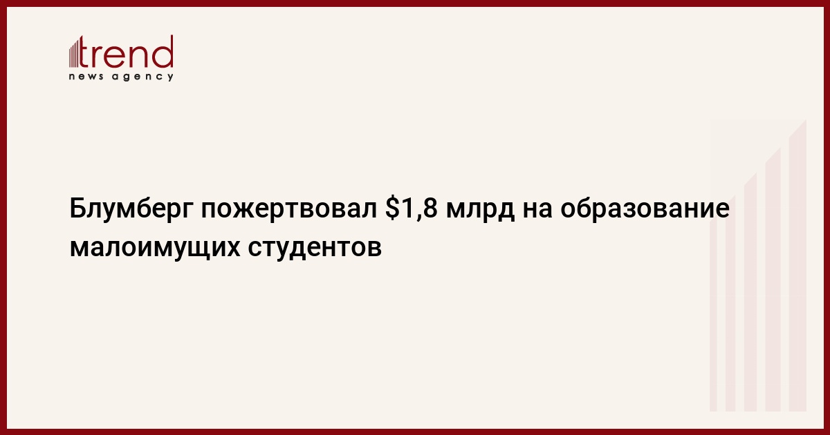 Бывший мэр Нью-Йорка и миллиардер Майкл Блумберг пожертвовал $1,8 млрд одному из крупнейших в США исследовательских и образовательных учреждений - Университету имени Джонса Хопкинса. Этот шаг преследует цель расширить прием в вуз одаренных молодых людей с ограниченными финансовыми возможностями, сообщил сам Блумберг в статье, опубликованной в воскресенье на сайте газеты The New York Times, передает ТАСС.