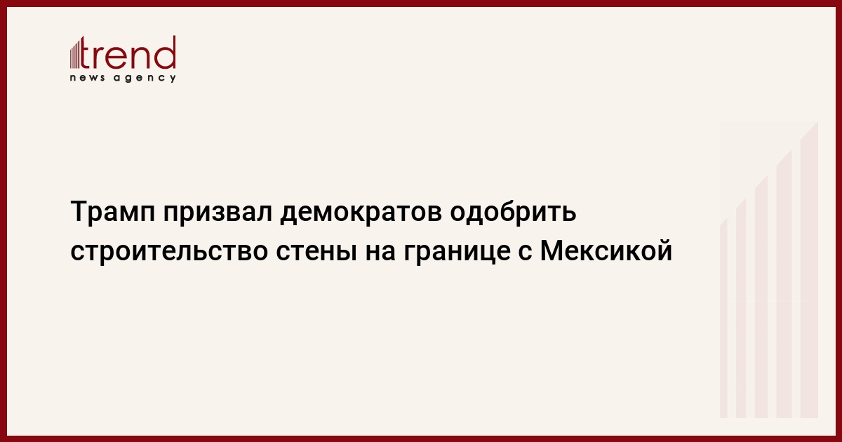 Президент США Дональд Трамп призвал лидеров Демократической партии в Конгрессе США одобрить строительство стены на границе с Мексикой для защиты штата Аризона от наплыва мигрантов. Соответствующее заявление он опубликовал в четверг на своей странице в Twitter, передает Trend со ссылкой на ТАСС.