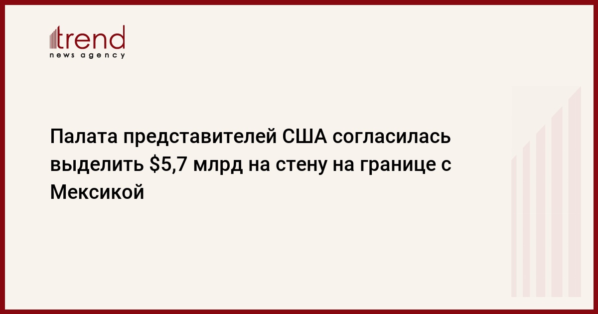 Палата представителей Конгресса США приняла в четверг проект резолюции об очередном временном продлении работы федерального правительства до 8 февраля 2019 года, включив туда расходы в размере $5,7 млрд на строительство стены на границе с Мексикой. Трансляция голосования велась на сайте нижней палаты законодательного органа страны, сообщает Trend со ссылкой на ТАСС.
