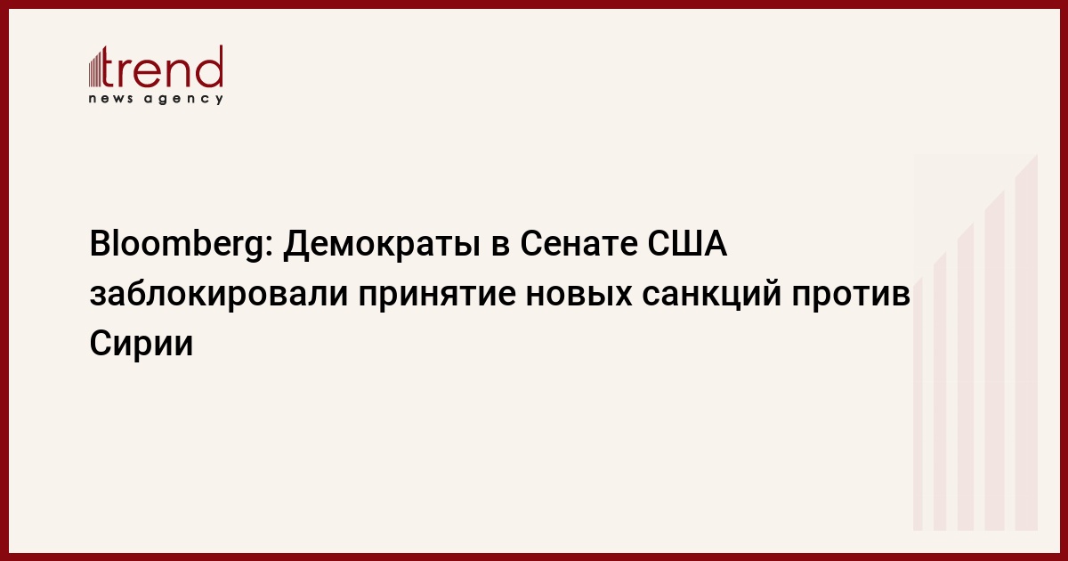 Демократы в Сенате США заблокировали рассмотрение законопроекта о новых санкциях против Сирии. Об этом в среду сообщило агентство Bloomberg, передает Trend со ссылкой на ТАСС.
