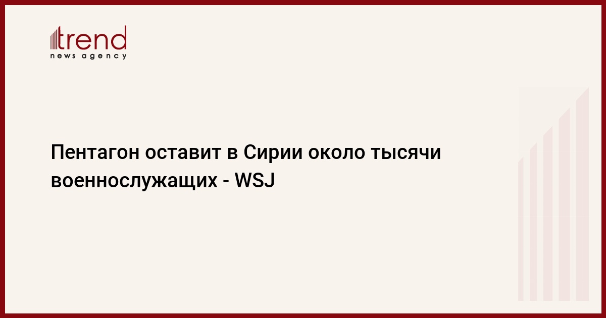 Министерство обороны США разрабатывает план по сохранению в Сирии воинского контингента численностью в приблизительно 1 тыс. человек. Как сообщает газета The Wall Street Journal, администрация президента США Дональда Трампа может пойти на такой шаг из-за затянувшихся переговоров с Турцией, союзниками в Европе и поддерживаемыми американской стороной формированиями по созданию безопасной зоны на северо-востоке Сирии, передает Trend со ссылкой на ТАСС.