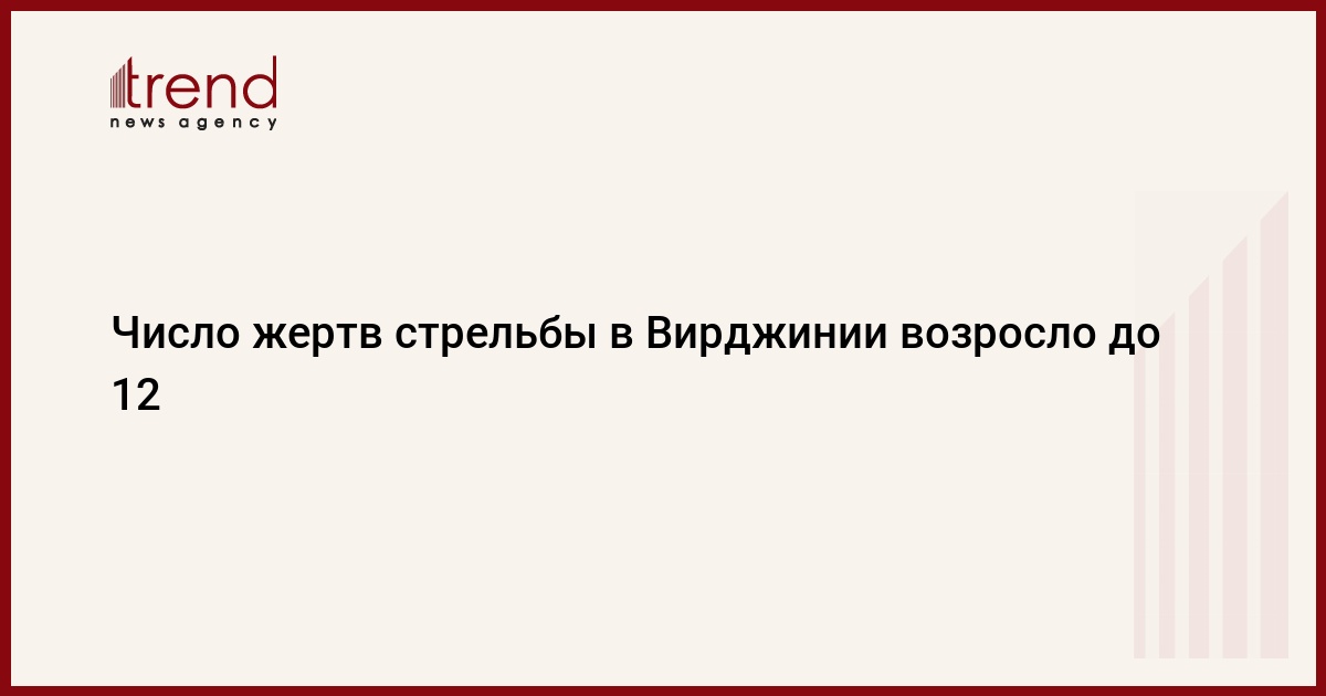 Число жертв стрельбы в здании муниципалитета курортного города Вирджиния-Бич (штат Вирджиния) возросло до 12. Об этом в пятницу на пресс-конференции, которую транслировала телекомпания CNN, заявил начальник полиции Вирджинии-Бич Джеймс Сервера, передает Trend со ссылкой на ТАСС.
