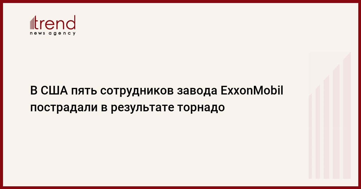 По меньшей мере пять человек пострадали в результате торнадо, обрушившегося на завод американской нефтегазовой компании ExxonMobil в США, передает Trend со ссылкой на РИА Новости.
