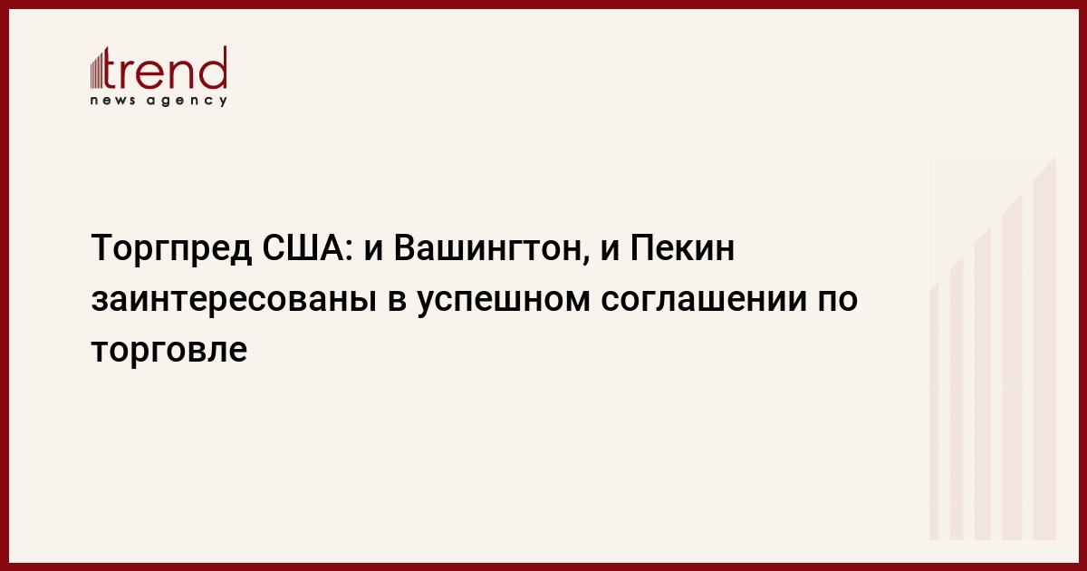 Заключение успешного соглашения по торговле находится в интересах как Пекина, так и Вашингтона. Такое мнение, как сообщило агентство Reuters, выразил в среду на слушаниях в комитете по доходам и расходам Палаты представителей Конгресса представитель США на торговых переговорах Роберт Лайтхайзер, передает Trend со ссылкой на ТАСС.