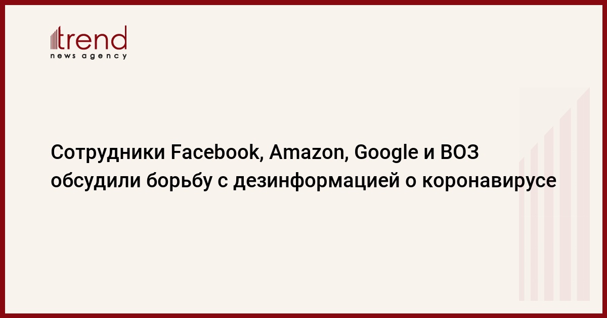 Представители более десяти американских технологических компаний, в том числе Facebook, Amazon и Google, обсудили с представителями Всемирной организации здравоохранения (ВОЗ) меры по предотвращению распространения недостоверной информации о вспышке заболевания, вызываемого новым коронавирусом, передает Trend со ссылкой на ТАСС.