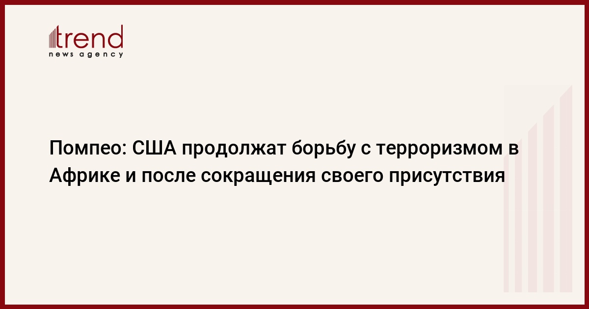 "Мы постараемся сделать все правильно. Я уверен, что мы сможем добиться верной расстановки сил... и продолжим обеспечивать важные для региона мир и безопасность", - приводит агентство Bloomberg слова Помпео. Он подтвердил, что в настоящее время США пересматривают численность своих военнослужащих в Африке.
