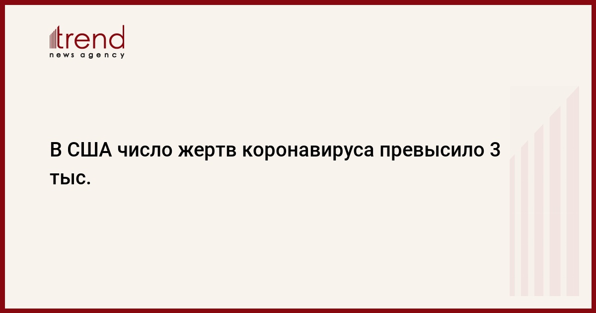Число жертв заболевания, вызываемого новым коронавирусом, на территории США превысило 3 тыс. Такие оценки привел в понедельник Университет Джонса Хопкинса, который делает подсчеты на основе данных федеральных и местных властей, передает Trend со ссылкой на ТАСС.