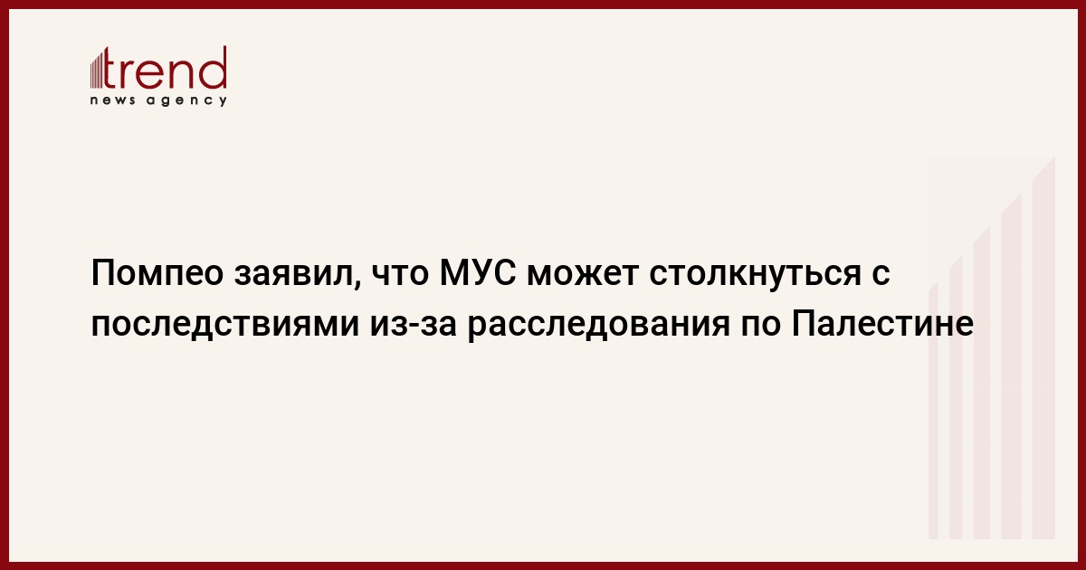 Международный уголовный суд (МУС) может столкнуться с последствиями, если продолжит нынешний курс, проводя расследование о возможных военных преступлениях на палестинских территориях. Об этом, как передает Trend со ссылкой на ТАСС, говорится в заявлении госсекретаря США Майкла Помпео, которое распространила пресс-служба Госдепартамента.