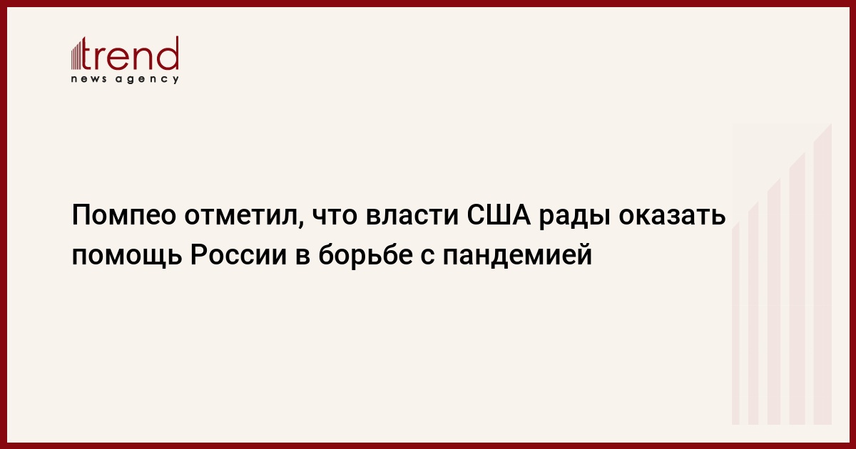 Власти Соединенных Штатов рады, что в состоянии помочь России в борьбе с пандемией нового коронавируса. Об этом заявил госсекретарь Майкл Помпео в опубликованном в воскресенье интервью газете Washington Examiner, передает Trend со ссылкой на ТАСС.