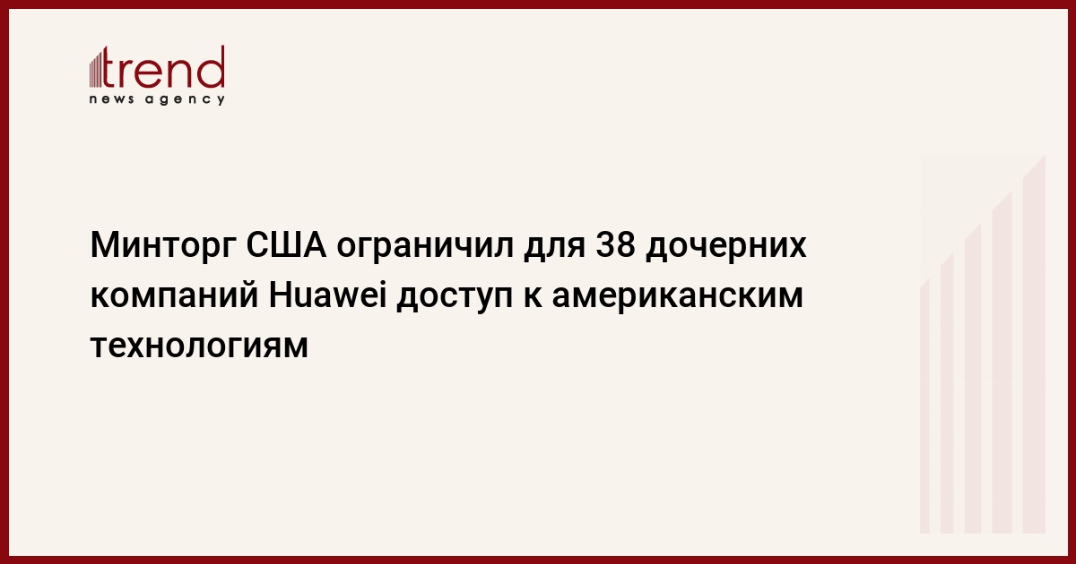Министерство торговли США в понедельник ввело ограничения в отношении 38 дочерних компаний китайской корпорации Huawei, касающихся доступа к американским технологиям и программному обеспечению. Об этом говорится в распространенном заявлении ведомства, передает Trend со ссылкой на ТАСС.