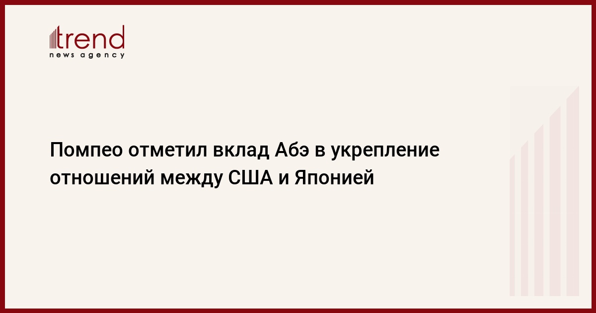 Госсекретарь США Майкл Помпео заявил в субботу о том, что Соединенные Штаты высоко ценят вклад уходящего в отставку премьер-министра Японии Синдзо Абэ в укрепление отношений между двумя странами, передает Trend со ссылкой на ТАСС.