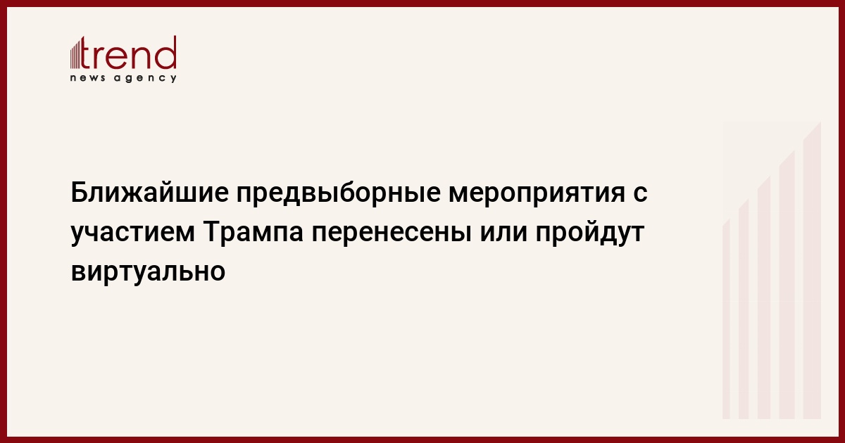 "Все ранее анонсированные мероприятия в рамках [предвыборной] кампании, требующие участия президента, находятся в процессе перехода в формат виртуальных мероприятий или временно откладываются. Кроме того, ранее анонсированные мероприятия с участием членов президентской семьи также временно откладываются. Все остальные предвыборные мероприятия будут рассматриваться по отдельности, и все соответствующие объявления мы сделаем в последующие дни", - говорится в заявлении, опубликованном в пятницу в Twitter пресс-секретаря избирательного штаба Трампа Тима Мертау.