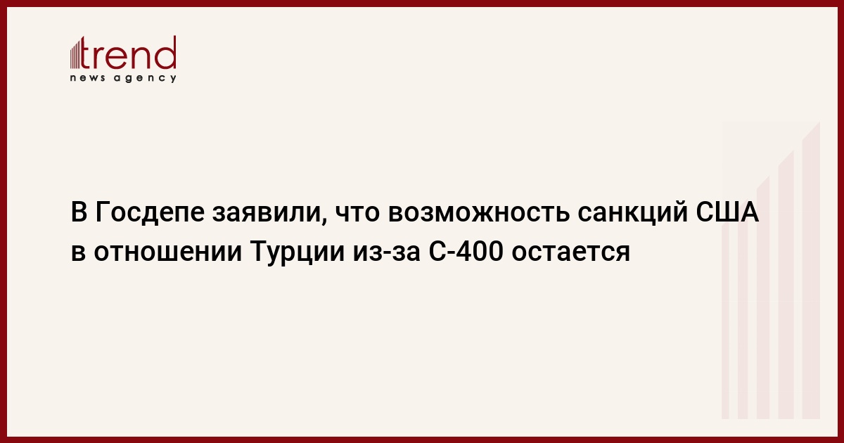 Возможность введения США санкций против Турции в связи с приобретением российских зенитных ракетных систем (ЗРС) С-400 остается. Об этом заявил в понедельник на телефонном брифинге для журналистов помощник госсекретаря США по военно-политическим делам Кларк Купер, передает Trend со ссылкой на ТАСС.
