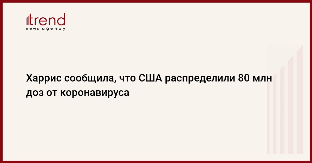 Власти США наращивают темпы производства вакцин, уже распределено более 80 млн доз препаратов. Об этом сообщила вице-президент США Камала Харрис, выступая на видеоконференции Национальной лиги городов, передает Trend со ссылкой на ТАСС.