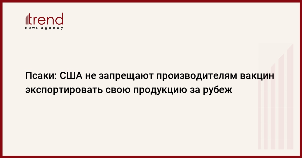 Власти США не запрещают американским производителям вакцин от коронавируса экспортировать свою продукцию в другие страны. Об этом пресс-секретарь Белого дома Джен Псаки сообщила в четверг на регулярном брифинге, комментируя ситуацию с поставками вакцин AstraZeneca в Европу, передает Trend со ссылкой на ТАСС.