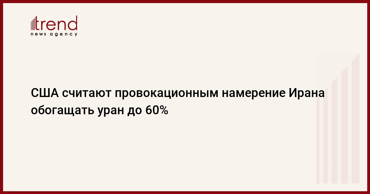"Мы серьезно относимся к провокационному объявлению Ирана о намерении обогащать уран до 60%. Группа "пять плюс один" должна одним голосом отвергнуть это. Данный шаг поставит под сомнение серьезность Ирана применительно к ядерным переговорам, подчеркивает императив возвращения к взаимному соблюдению СВПД (Совместному всеобъемлющему плану действий - прим. ТАСС)", - заявила официальный представитель американского лидера.