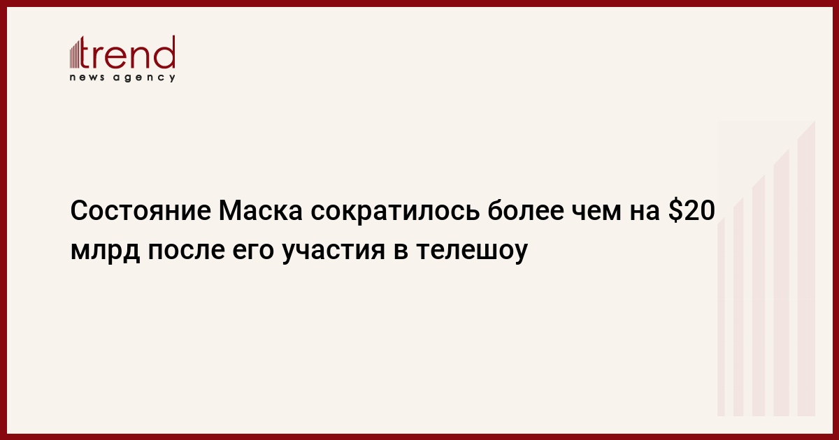 Состояние главы компаний Tesla и SpaceX Илона Маска сократилось более чем на $20 млрд после его участия в телешоу Saturday Night Live (SNL, "Субботним вечером в прямом эфире"). Об этом сообщил в четверг журнал Forbes, передает Trend со ссылкой на ТАСС.