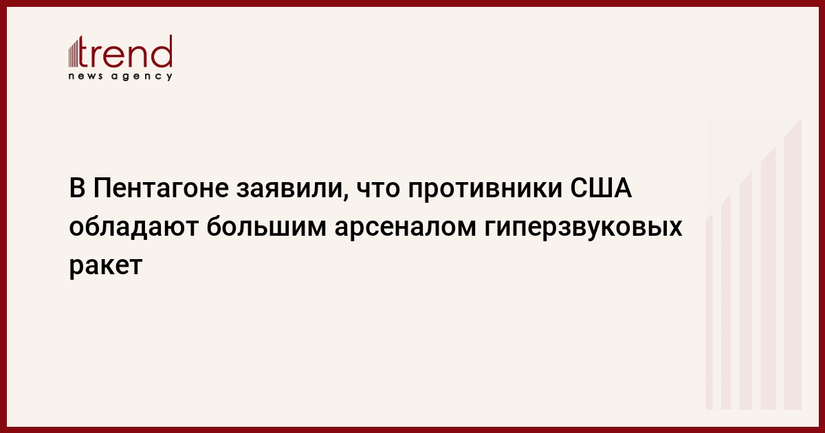 Противники США создают новый потенциал и располагают значительным арсеналом гиперзвуковых ракет. Об этом, как передает Trend со ссылкой на ТАСС, заявил заместитель директора по гиперзвуковым разработкам в отделе научно-исследовательских и опытно-конструкторских разработок Пентагона Майкл Уайт, выступая в ходе видеоконференции вашингтонского Центра стратегических и международных исследований.