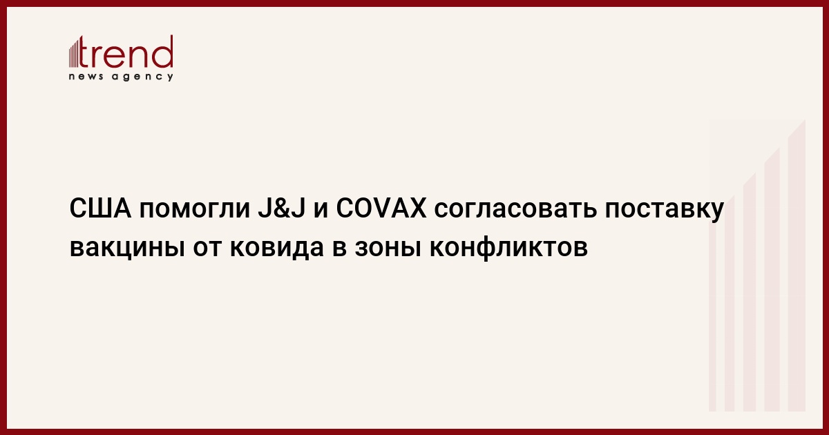 США содействовали достижению договоренностей между компаний Johnson & Johnson (J&J,) и международной программой COVAX относительно отправки вакцины от коронавируса людям, которые находятся в зонах конфликтов, передает Trend со ссылкой на ТАСС.