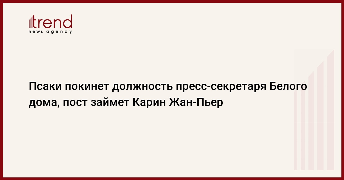 Пресс-секретарь президента США Джен Псаки покинет свой пост 13 мая, на ее должность назначена ее заместитель Карин Жан-Пьер. Об этом говорится в распространенном в четверг заявлении Белого дома, передает Trend со ссылкой на ТАСС.
