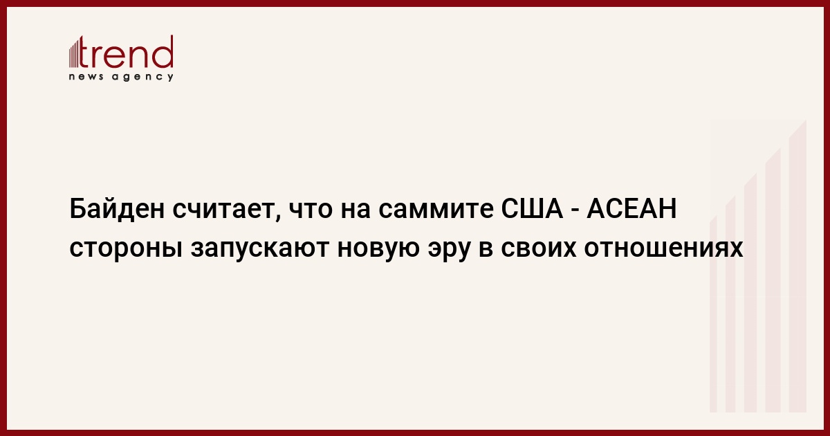США и страны Ассоциации государств Юго-Восточной Азии (АСЕАН) на проходящем в Вашингтоне саммите запускают новую эру в своих отношениях. С таким утверждением выступил в пятницу на этой встрече президент США Джо Байден, передает Trend со ссылкой на ТАСС.