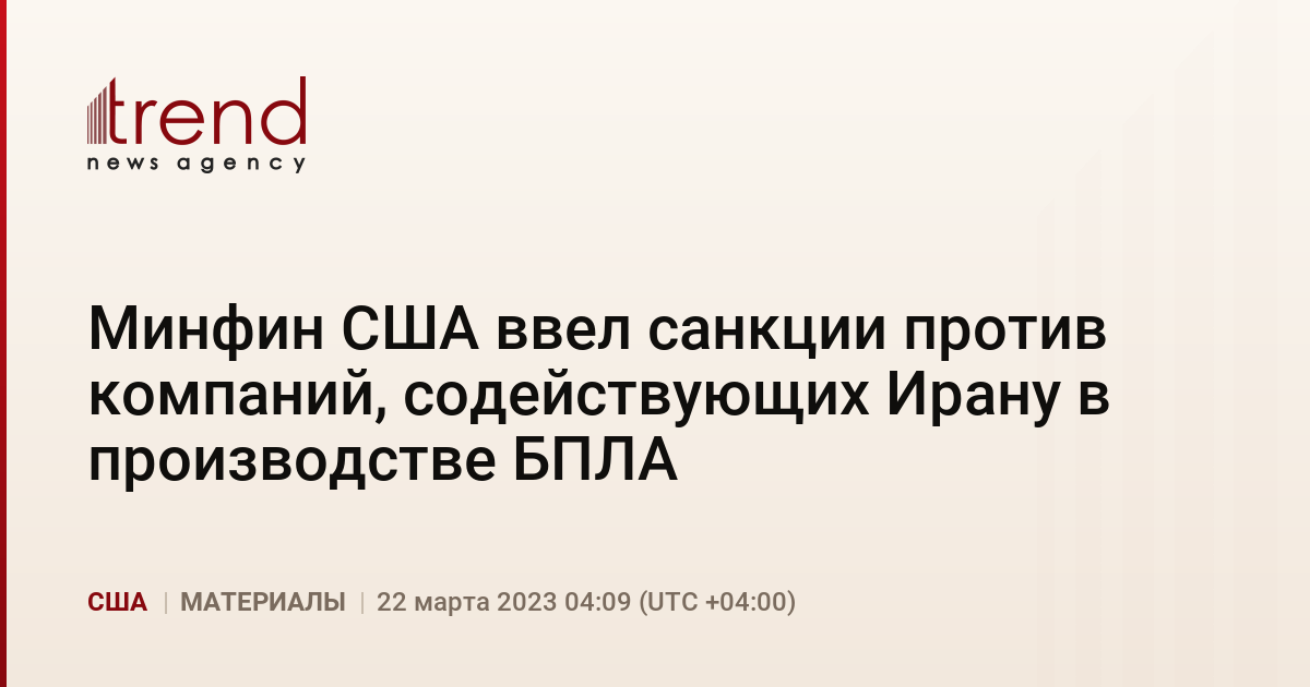 Власти США ввели санкции в отношении четырех юридических и трех физических лиц, оказывающих, по утверждению Вашингтона, поддержку Ирану в сфере производства беспилотных летательных аппаратов (БПЛА) и вооружений. Об этом, как передает Trend со ссылкой на ТАСС, говорится в заявлении Минфина США, опубликованном во вторник.