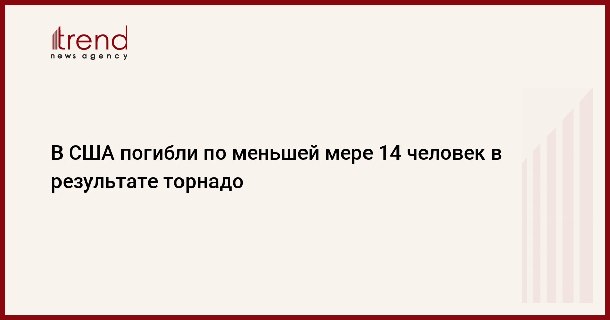 Торнадо в штате Миссисипи унес жизни по меньшей мере 14 человек. Об этом в субботу сообщила телекомпания ABC со ссылкой на местные и федеральные власти, передает Trend со ссылкой на ТАСС.