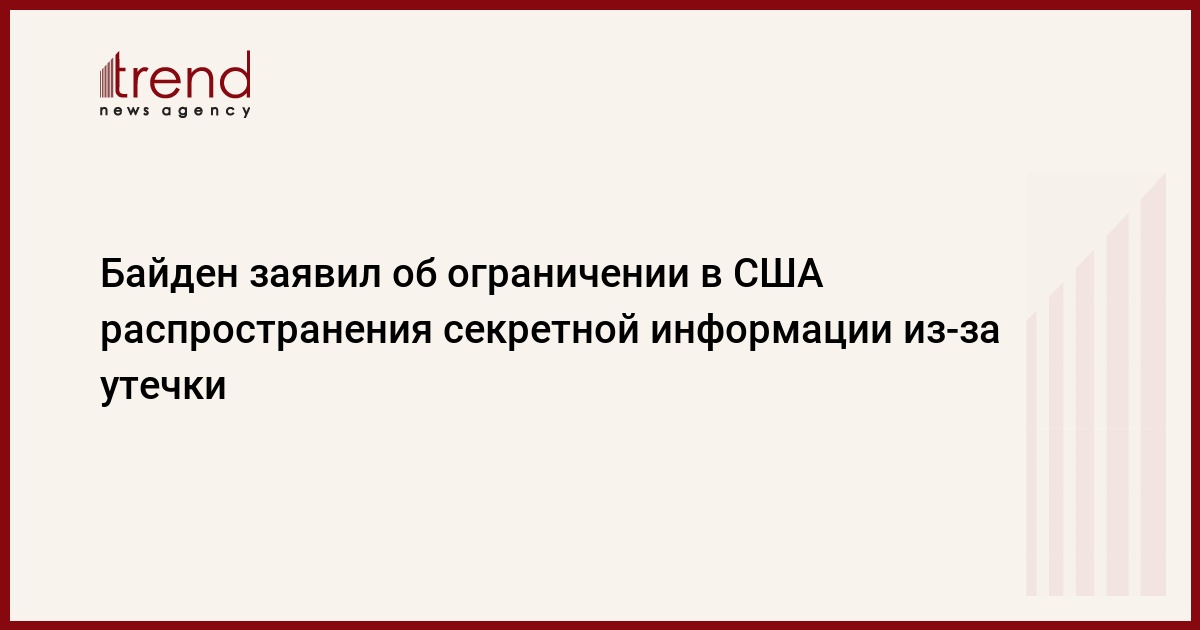 Американское правительство ограничит масштабы доступа госслужащих США к секретной информации в свете нынешней утечки материалов Пентагона. Об этом говорится в опубликованном в пятницу письменном заявлении президента США Джо Байдена, передает Trend со ссылкой на ТАСС.