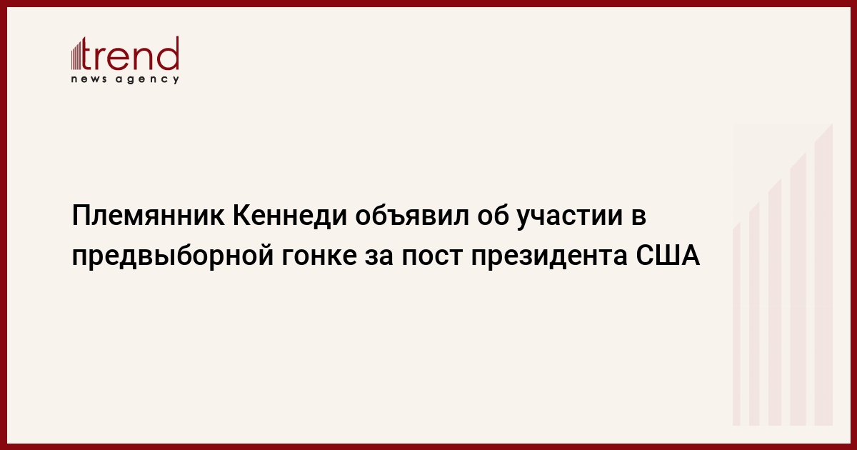 Племянник 35-го президента США Джона Кеннеди Роберт Кеннеди-младший в среду объявил, что примет участие в борьбе за пост президента в 2024 году от Демократической партии, передает Trend со ссылкой на Интерфакс.